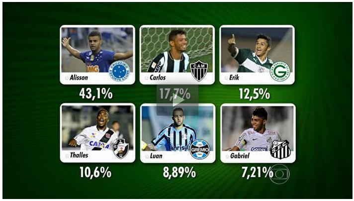 O cruzeirense Alisson foi o mais votado entre os seis concorrentes na enquete da revelação de 2014 promovida pelo Esporte Espetacular. O meio-campista da Raposa recebeu 43,1% dos votos dos internautas. O atacante atleticano Carlos ficou em segundo lugar, com 17,7% da preferência; Erik, Thalles, Luan e Gabriel vieram na sequência.
