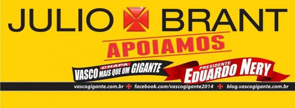 Hoje é um dia decisivo para a história do VASCO DA GAMA. Vamos realizar as eleições para o Conselho Deliberativo, que nos levarão a uma nova gestão para o próximo triênio. Cientes de nossa responsabilidade diante do futuro do clube e temendo que a cisão do campo progressista do VASCO o leve a cair nas mãos do Eurico Miranda ou do Roberto Monteiro, os signatários da chapa VASCO MAIS QUE UM GIGANTE, comandada por Eduardo Nery, anunciam a sua coalizão com a chapa SEMPRE VASCO, presidida por Julio Brant.