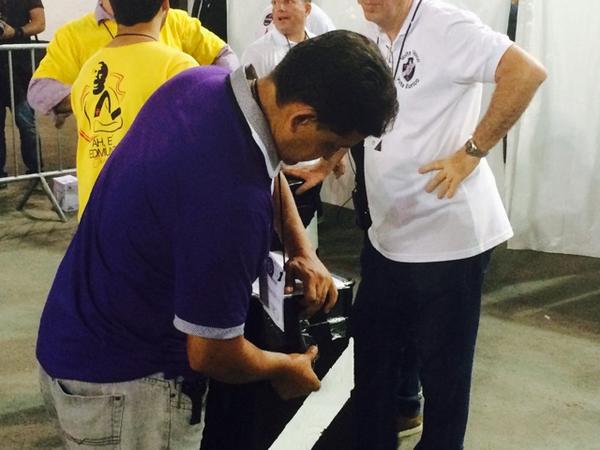 Edgard Maciel de Sá @edmacieldesa Sexta urna lacrada em São Januário. Falta uma hora e meia para o fim da eleição do Vasco #gevas
