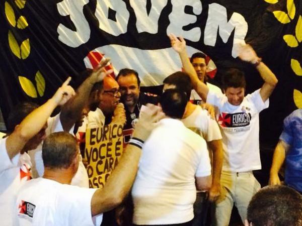Edgard Maciel de Sá @edmacieldesa "Ai ai ai, está chegando a hora...", "Ôôôô o Eurico voltou!". Apoiadores de Eurico cantam e festejam vitória #gevas
