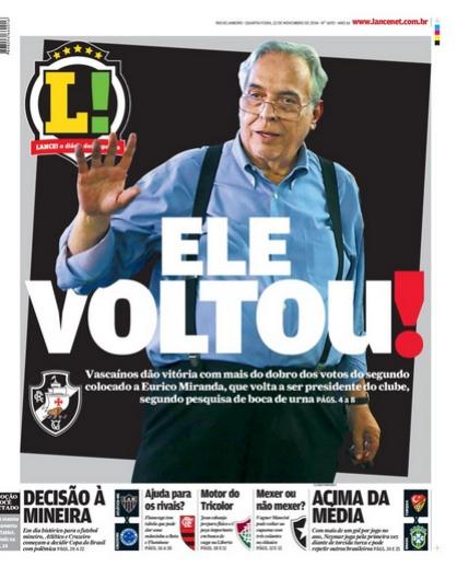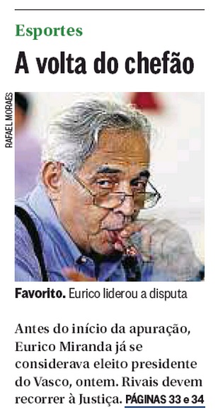 Veja como a imprensa carioca destacou a vitória de Eurico nas eleições do Vasco