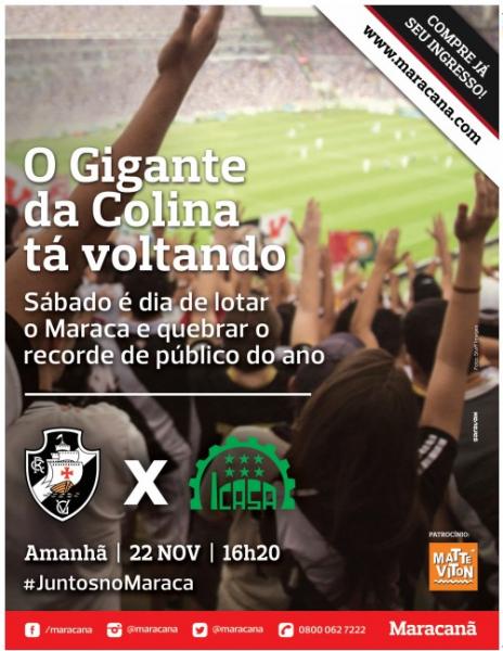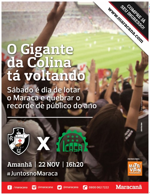 Consórcio Maracanã publica anúncio em jornal convocando torcida para Vasco x Icasa