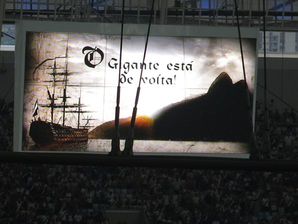 Placar eletrônico do Maracanã mostra imagem 'O Gigante está de volta'