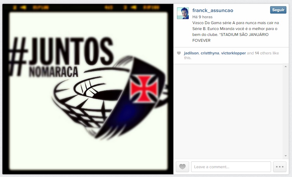 franck_assuncao Vasco Da Gama série A para nunca mais cair na Série B. Eurico Miranda você é o melhor para o bem do clube. *STADIUM SÃO JANUÁRIO FOVEVER
