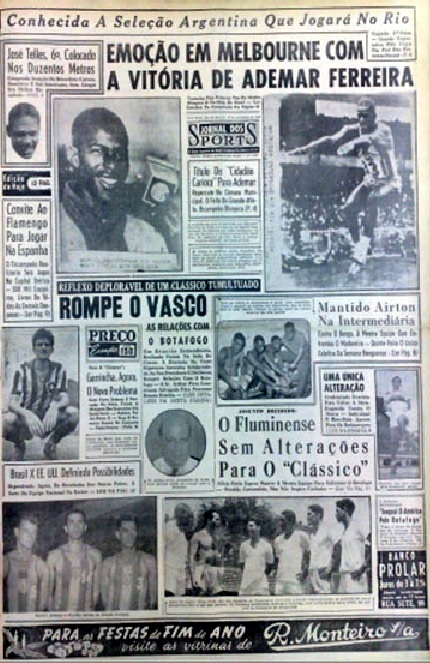No dia 27 de novembro de 1956, portanto há 58 anos, o atleta vascaíno Adhemar Ferreira da Silva conquistava a medalha de ouro no salto triplo dos Jogos Olímpicos de Melbourne, na Austrália, e se sagrava bicampeão olímpico.