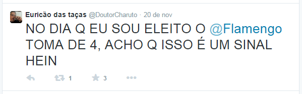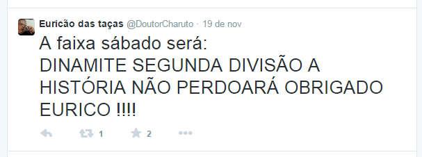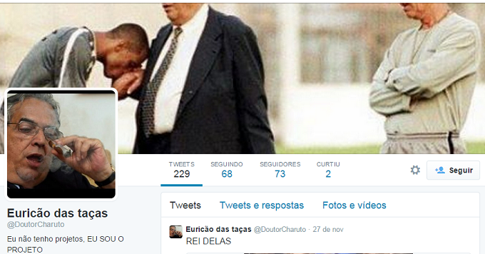 A exemplo de Roberto Dinamite (Robertão Dinamite - @rdinamite1O - hoje desativado), Cristóvão Borges (Cristrollvão Borges - @cristrollvao) e Joel Santana (Joel Sacana - @Novo_Lopes), o presidente eleito do Vasco Eurico Miranda também ganhou uma "homenagem", em forma de perfil bem-humorado, no Twitter. Trata-se do "Euricão das Taças" (https://twitter.com/DoutorCharuto). Veja, abaixo, alguns posts.