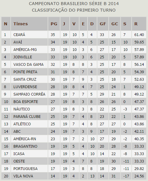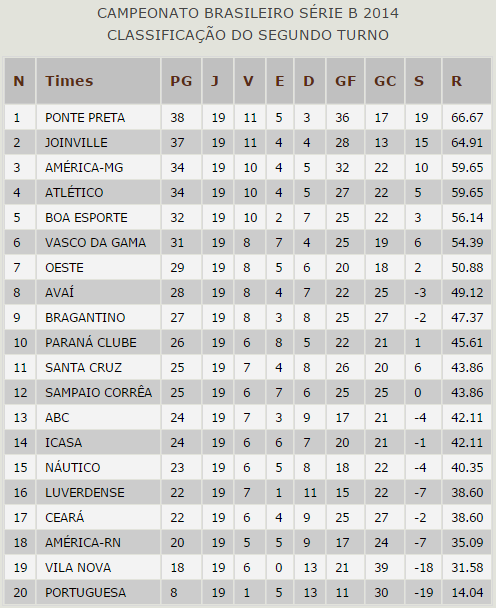 Vasco foi o 5º colocado no turno e o 6º colocado no returno da Série B
