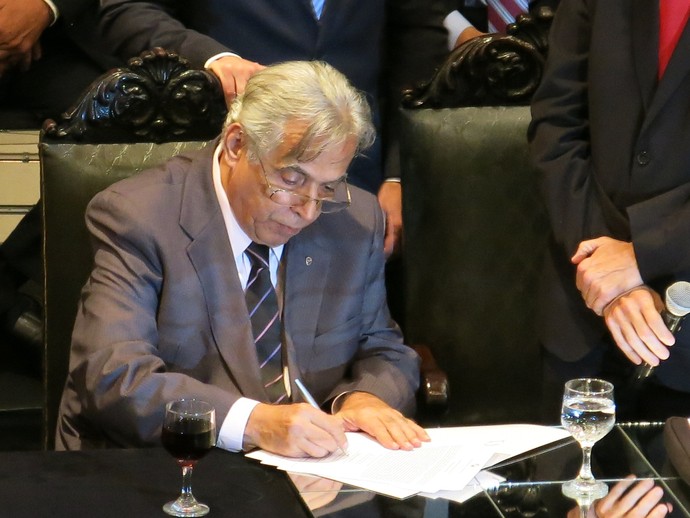 Eurico Miranda foi empossado presidente do Vasco para o triênio 2015/16/17 na noite desta terça-feira. Depois de vencer a eleição no 11 de novembro e, consequentemente, a votação do conselho deliberativo no dia 19, o dirigente assumiu o cargo oficialmente em cerimônia realizada na Sede Náutica do clube, na Lagoa, Zona Sul do Rio de Janeiro.