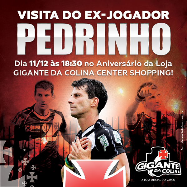 É amanhã! O ex-jogador Pedrinho, ídolo da Torcida Vascaína, estará na loja Gigante da Colina do Center Shopping Jacarepaguá, à partir das 18:30.