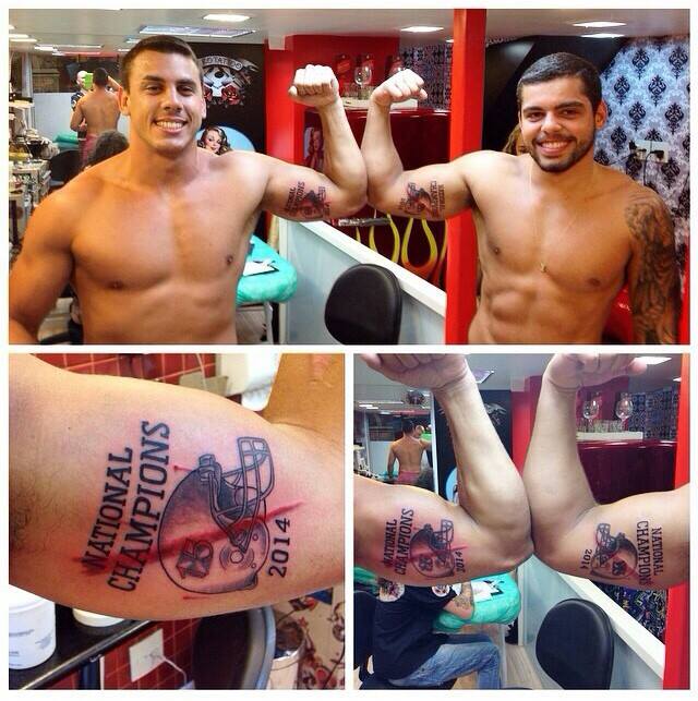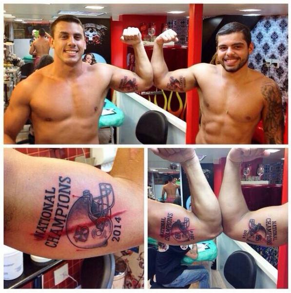 Para comemorar e marcar definitivamente o titulo nacional, os jogadores Ryan Homem e Antonio Carvalho fizeram tattoos celebrando esse grande momento. Ryan #15, na esquerda na foto, é Defensive End e Kicker e foi responsável pelo chute decisivo que deu o título ao Patriotas. Antonio #25 joga como Cornerback e teve papel importante na campanha do Vasco impedindo avanço dos wide receivers adversários.