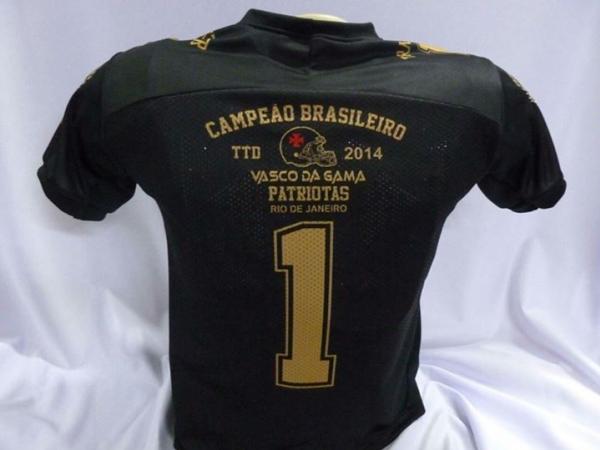 Campeão do Torneio Touchdown no último sábado, o Vasco Patriotas terá uma camisa comemorativa para celebrar a conquista. Preto e com a tradicional faixa diagonal branca, o uniforme tem o número e a cruz de malta dourados. Nas mangas e nas costas, aparece a inscrição “campeão brasileiro”. O time planeja realizar um lançamento oficial.