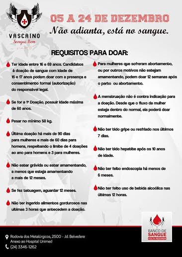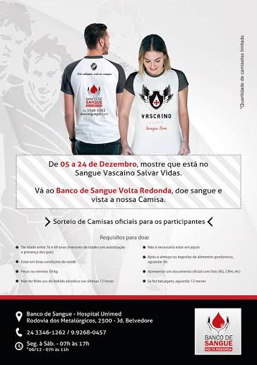 Banco de Sangue do Hospital Unimed VR está realizando uma campanha de doação de sangue com a torcida do Vasco.