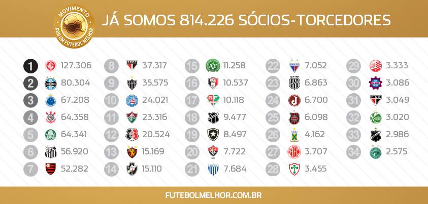 Com 14.950 sócios-torcedores, Vasco está em 14º no ranking do Movimento por um Futebol Melhor