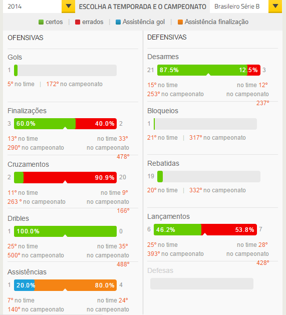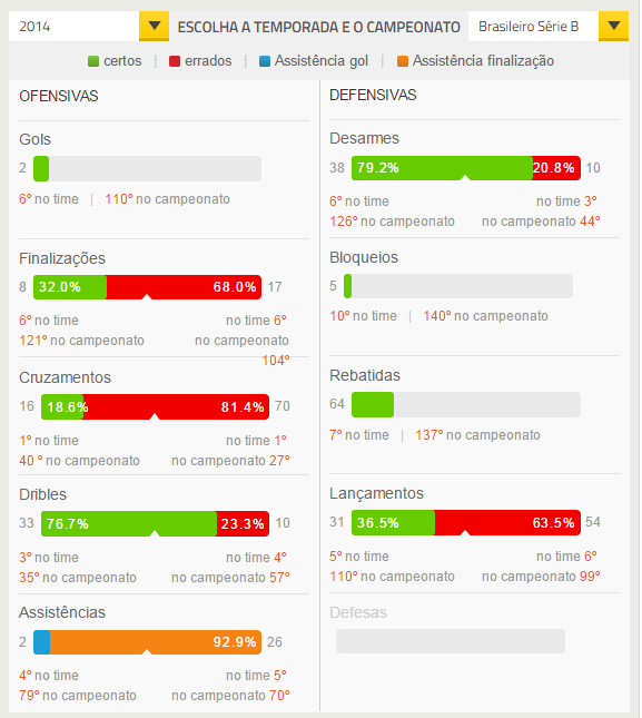 Veja abaixo a estatística de Jean Patrick pela Luverdense em 2014, segundo o site Footstats: