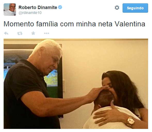 Agora ex-presidente do Vasco, Roberto Dinamite posta no Twitter foto com neta
