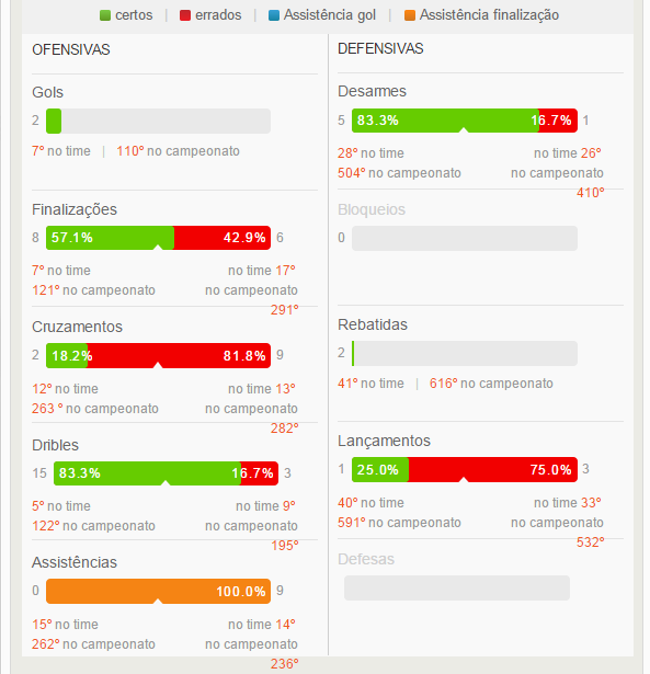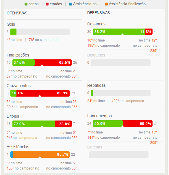 Veja abaixo a estatística de Marcinho, reforço do Vasco, quando jogou no Vitória neste ano:
