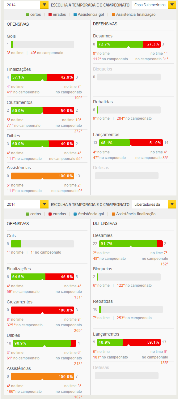 Veja abaixo a estatística de Julio dos Santos em 2014 na Copa Sul-Americana e Libertadores da América pelo Cerro Porteño: