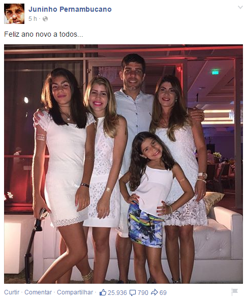 Juninho Pernambucano posta foto da família e deseja Feliz Ano Novo no Facebook