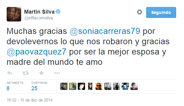Em junho, durante a Copa do Mundo, o goleiro do Vasco e da seleção do Uruguai Martín Silva relatou no Twitter que seus bichos de estimação haviam sido roubados (relembre clicando aqui). O incidente teve um final feliz, com a devolução dos animais, e o arqueiro vascaíno comemorou no Twitter.