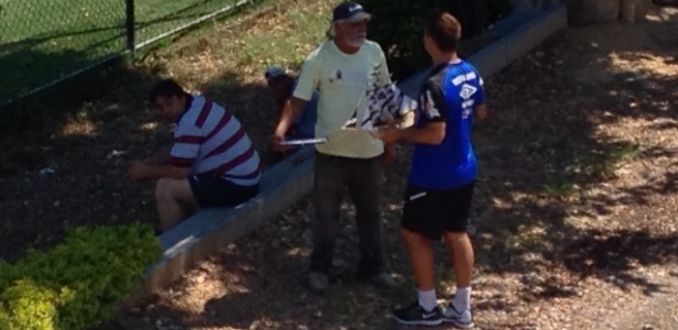 Embora as atividades não sejam abertas ao público, o senhor Nilo Silveira, de 58 anos, conseguiu convencer o proprietário do Centro de Treinamento João Havelange a entrar no local.