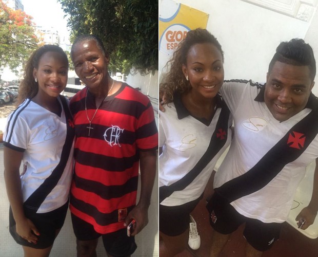 E, apesar de levar a Cruz de Malta no peito, a coleguinha posou ao lado do ex-meia-direita que marcou época no grande rival do Vasco: o time do Flamengo.