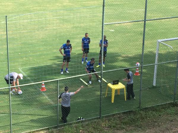 Edgard Maciel de Sá @edmacieldesa Apenas os goleiros trabalharam no gramado sob a supervisão do coordenador científico Alex Evangelista #gevas