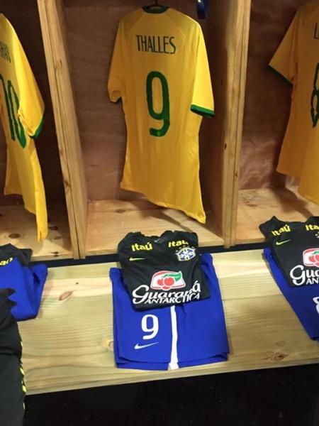 Thalles posta no Facebook foto de seu uniforme no vestiário da Seleção Sub-20