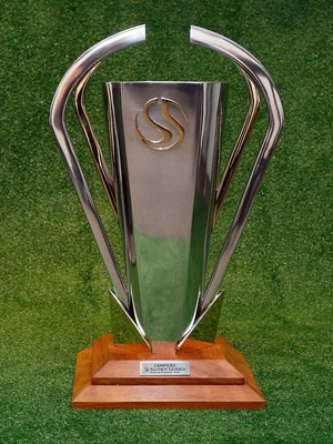 O troféu chegou neste fim de semana na capital amazonense e ficará exposto até o encerramento do Super Series, que será marcado pela partida entre São Paulo e Flamengo no dia 25, em um shopping da Zona Centro-Sul. Confeccionada em alumínio e madeira, a taça tem 68cm de altura, 44cm de largura, 25,5kg e será erguida pelo time campeão do triangular.