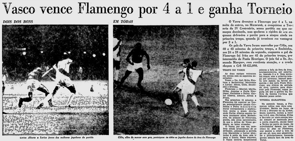 VASCO: Ita, Joel (Massinha), Brito, Fontana (Pereira), Barbosinha, Maranhão, Lorico, Mário (Joãozinho), Célio, Saulzinho e Zezinho. Técnico: Zezé Moreira.