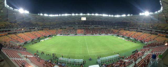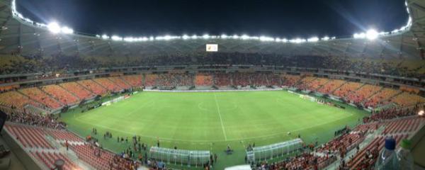 Edgard Maciel de Sá @edmacieldesa Muitos espaços ainda vazios na Arena da Amazônia. Faltam 15 minutos para a bola rolar #tramazonia