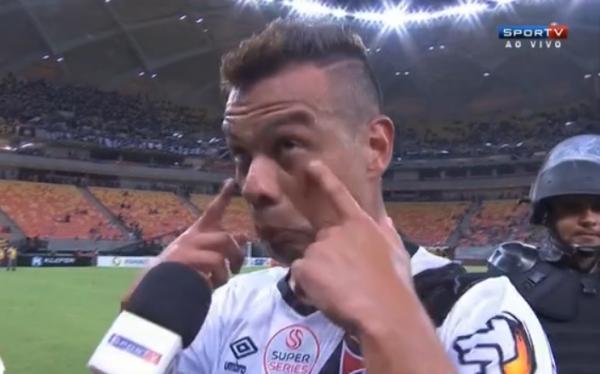 "Tá de rivalidade, a gente sabe como é. Bem disputado, está bonito, as duas equipes tiveram oportunidade de gols. A nossa equipe está de parabéns. Eu fiz a falta, o juiz está meio cego".