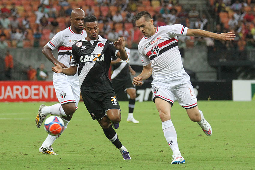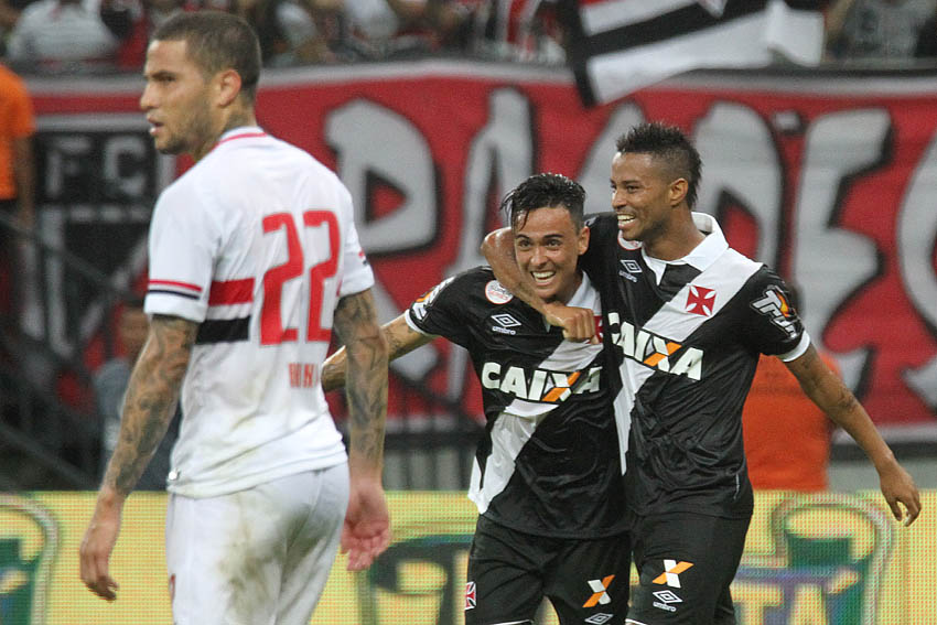 Luis Fabiano abriu o placar nesta sexta-feira, enquanto o lateral direito são-paulino Bruno mandou contra a própria rede e empatou para o Vasco. Já no segundo tempo, depois da expulsão de Rafael Toloi, o volante Souza marcou o gol da vitória são-paulina.