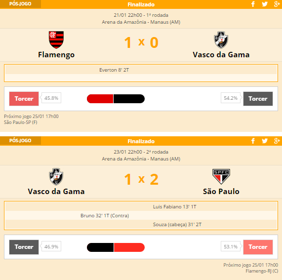 Fonte: NETVASCO (texto, classificação, artilharia), Futebol Interior (resultados, próximos jogos)