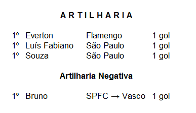 Como o único gol vascaíno na competição foi marcado por um jogador do São Paulo contra, nenhum jogador do Vasco aparece na tábua de artilharia.