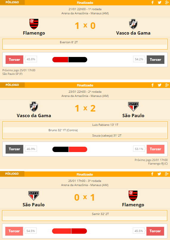 Terminou o Torneio Super Series, disputado em Manaus (AM). O Flamengo ficou com a 1ª colocação, o São com o 2º lugar e o Vasco terminou no 3º posto.