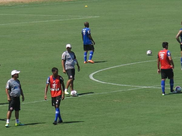 Lateral-direito Madson, de colete laranja, também treina entre os titulares neste momento #gevas
