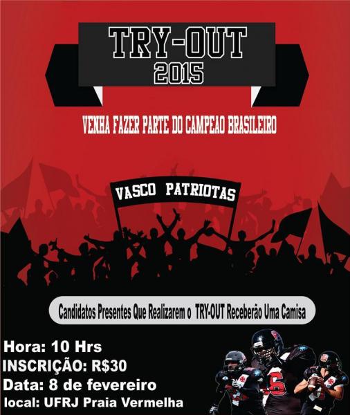O Vasco da Gama Patriotas, campeão nacional de Futebol americano, chama a todos os interessados para participar do seu tryout (seletiva).