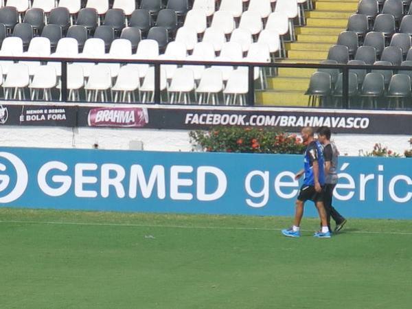Guiñazu anda ao redor do gramado ao lado do coordenador científico Alex Evangelista #gevas