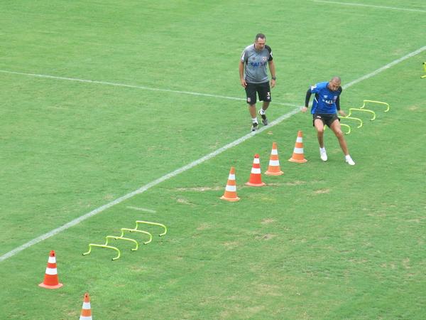 Antes, apenas o volante Guiñazu estava em campo com o preparador físico Fábio Ganime #gevas