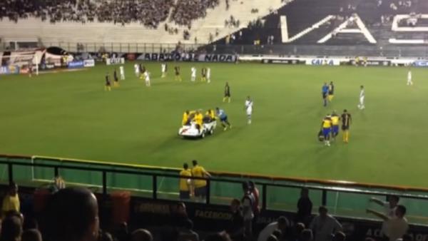 Carro maca enguiça no jogo entre Vasco e Madureira e é empurrado para fora de campo Bateria é trocada e carrinho volta a funcionar. (Clique aqui para assistir ao vídeo)