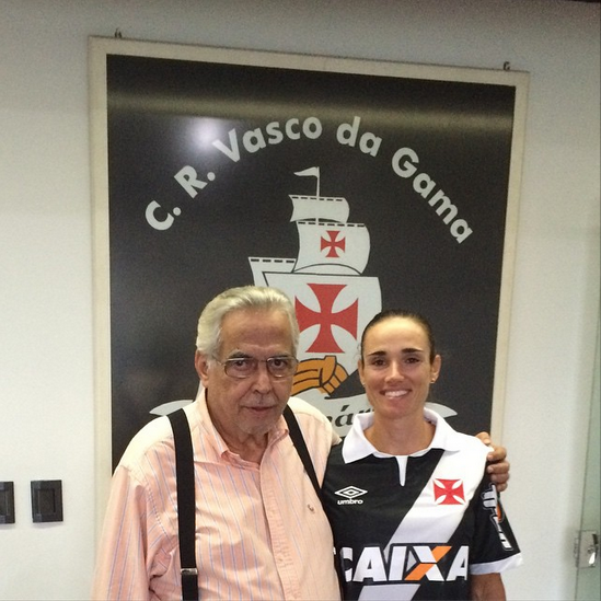 Estou de volta ao Vasco, clube que defendi entre 2005 e 2009. Estou muito feliz de voltar e fazer parte dessa nova fase do clube. Obrigada ao presidente Eurico Miranda e ao Seu Lopes pelo convite e pelo carinho que fui recebida, assim como toda a diretoria. Mas também gostaria de agradecer ao Flamengo, um clube que me recebeu de braços abertos em 2009, onde conquistei os principais títulos da minha carreira. Um agradecimento especial ao técnico Marcão, por quem tenho grande carinho. Obrigada ao Cacá, a toda equipe multidisciplinar que esteve sempre pronta a ajudar e ao Edson, que sempre me deu força. Desejo ao clube e a toda equipe boa sorte em 2015. Obrigada.