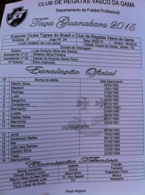 VASCO DA GAMA: Martín Silva; Madson, Luan, Rodrigo e Christiano; Serginho, Lucas e Bernardo; Rafael Silva, Marcinho e Montoya. Téc Doriva.