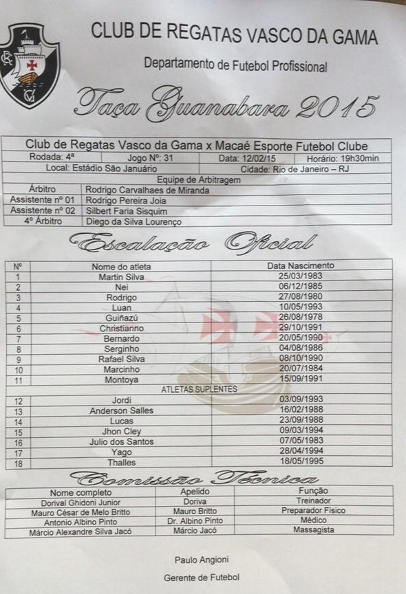Confira escalação oficial do Vasco; Nei e Guiñazú voltam ao time titular