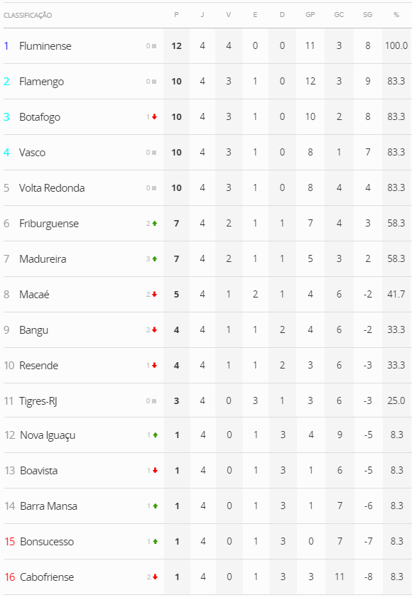 Terminada a 4ª rodada da Taça Guanabara, que equivale à 1ª fase do Campeonato Estadual 2015, o Vasco, que derrotou o Macaé por 3 a 0, manteve-se na 4ª colocação na tabela e 2 pontos atrás do líder Fluminense. O Gigante da Colina está dentro da na zona de classificação às semifinais do Estadual.