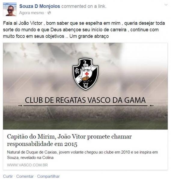 Mirim: Ídolo de João Vitor, Souza deseja sucesso ao jovem jogador