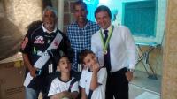 QUINTA-FEIRA FOI UM DIA EMOCIONANTE NA VIDA DO MEU FILHO JOÃO PEDRO, ELE JUNTO COM SEU AMIGO BARATA ENTREGARAM A MEDALHA DA COPA DO BRASIL 2011 EM QUE O VASCO FOI CAMPEÃO AO DR. LEVEN SIANO. O BARATA, CARINHOSAMENTE DOOU ESSA MEDALHA PARA QUE FOSSE FEITO UM LEILÃO EM PROL DO JOÃO E O GLOBO ESPORTE VEIO ATÉ NOSSA CASA PARA REGISTRAR ESSE ACONTECIMENTO E PRA FECHAR COM CHAVE DE OURO, ELES FIZERAM UMA SURPRESA A TODOS. TROUXERAM O JOGADOR FELIPE PARA PARTICIPAR DESSE MOMENTO E FALAR UM POUCO DA CONQUISTA DO VASCO.