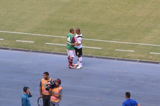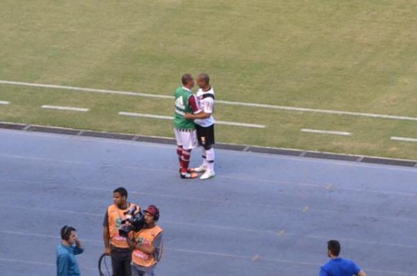 Edgard Maciel de Sá @edmacieldesa Walter, do Flu, e Rodrigo, do Vasco, se cumprimentam antes do jogo. Dupla jogou junta no Goiás #trengenhao