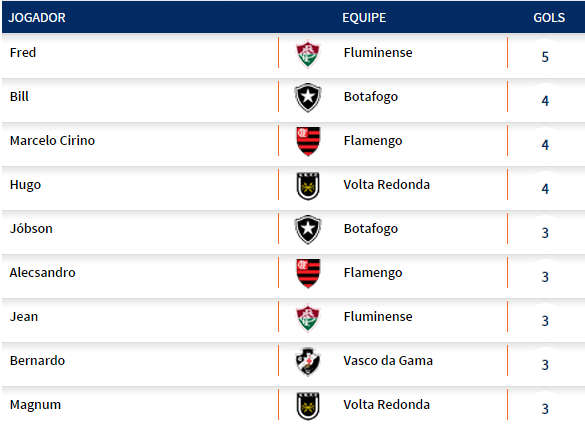 Bernardo, com 3 gols, está na 5ª colocação na artilharia, que é liderada por Fred, do Fluminense, com 5 gols.