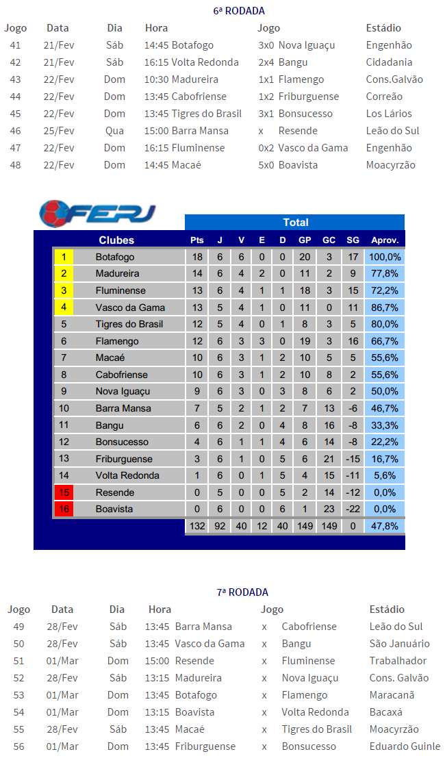 Fonte: NETVASCO (texto), FFERJ (tabela, classificação)