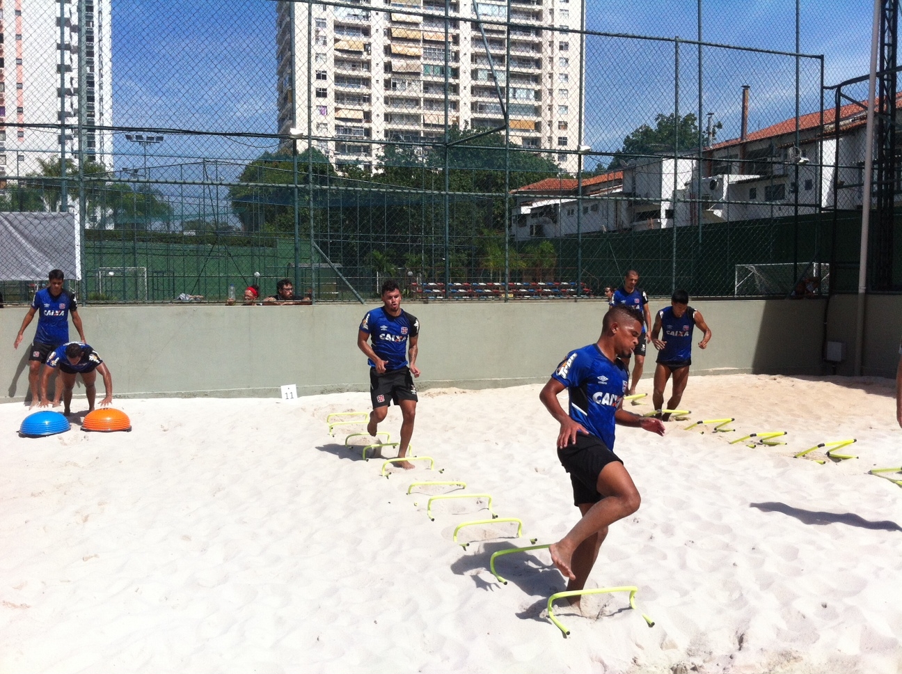 A atividade, na Academia Akxe, no campus da Universidade Estácio de Sá, durou cerca de 40 minutos, debaixo de sol forte, e teve ênfase na força e na agilidade. A mudança do piso tem objetivo de estimular os atletas para que haja ganho ainda maior no trabalho. O elenco volta a treinar às 16h, em São Januário.
